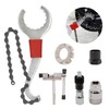 - 3-in-1 sprocket wrench with chain: chain whip can be used as a fixed wrench, a bottom bracket wrench and as a rear hook wrench. This wrench and chain whip tool fits the red anti-slip handle, whose grip is longer and the force is better, the ergonomic handle ensures comfortable handling. It can be used in conjunction with the sprocket remover to install or remove the flywheel faster and more convenient. The 3-in-1 cassette wrench can replace three independent tools, not only save space in your toolbox and carry more conveniently, but also save money.