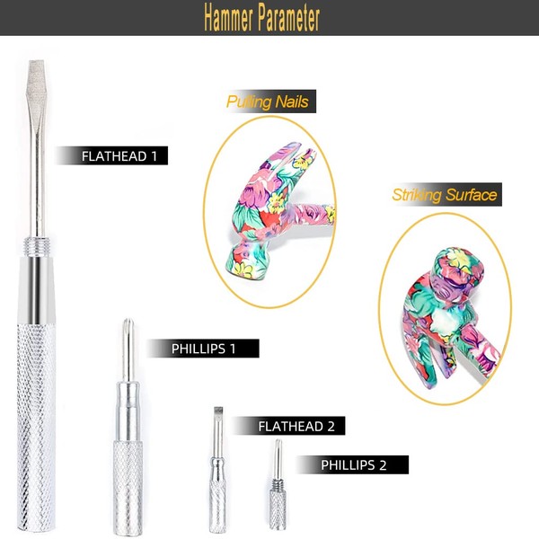 - ✨【PRECAUTIONS】 Before use, check whether the screwdriver tool handle has cracks or whether the installation is firm to prevent the metal hammer head from falling off and causing accidents. If the handle is broken or damaged, it should be replaced with a new one immediately, no further use is allowed.