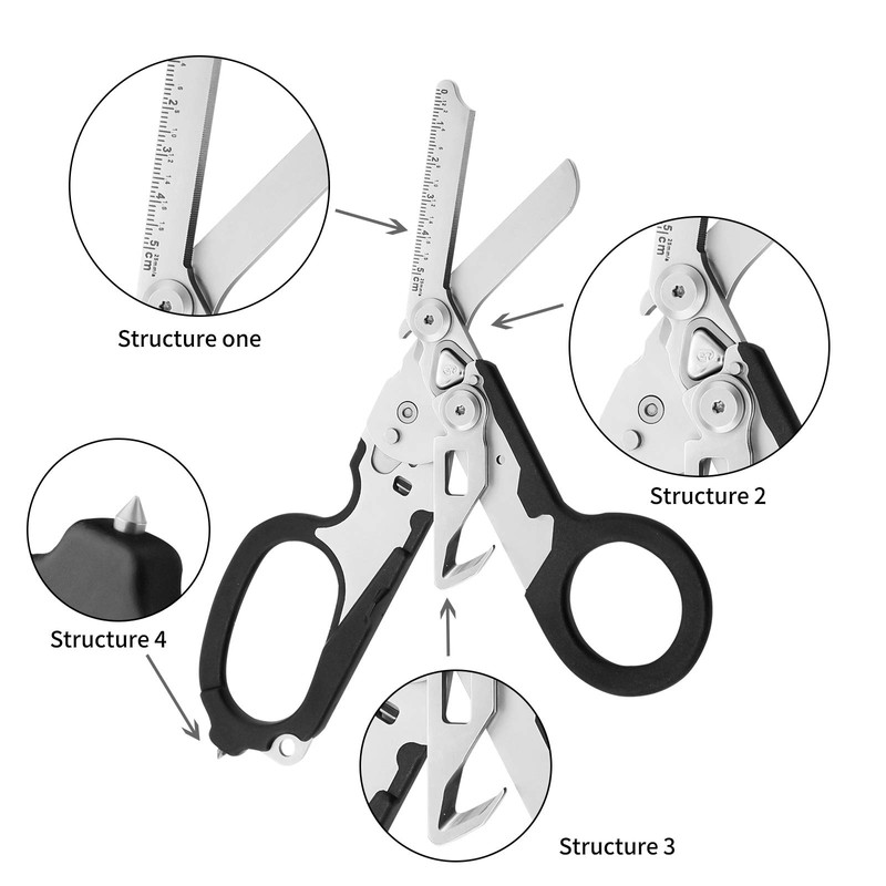 - Instant response: equipped with 6 important tools, including a folding emergency scissors, a tape cutter, a ring cutter, a ruler, an oxygen tank wrench and a carbide glass breaker