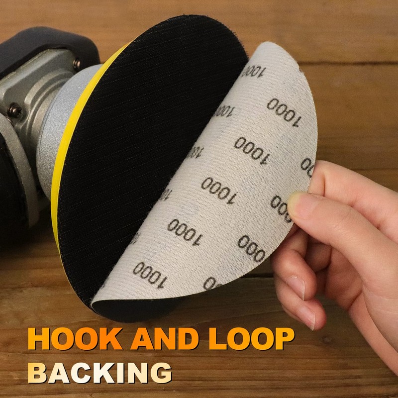 • 【APPLICATION MACHINE】: Disc grips to the appropriate hook and loop back up pad attached to an orbital random sander or DA polisher or angle grinder.