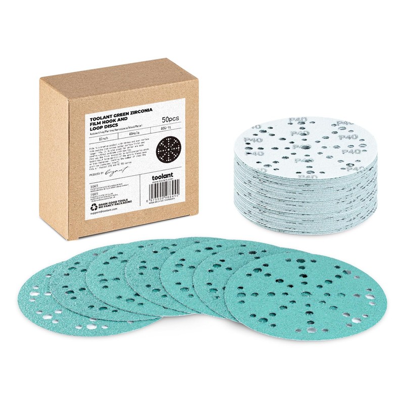 6 Inch 49 Hole 40 Grit Sanding Disc, Hook and Loop Film Backing Sanding Discs Compatible with Festool Sanders by toolant - 50 Pack