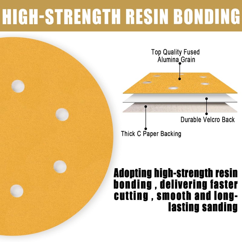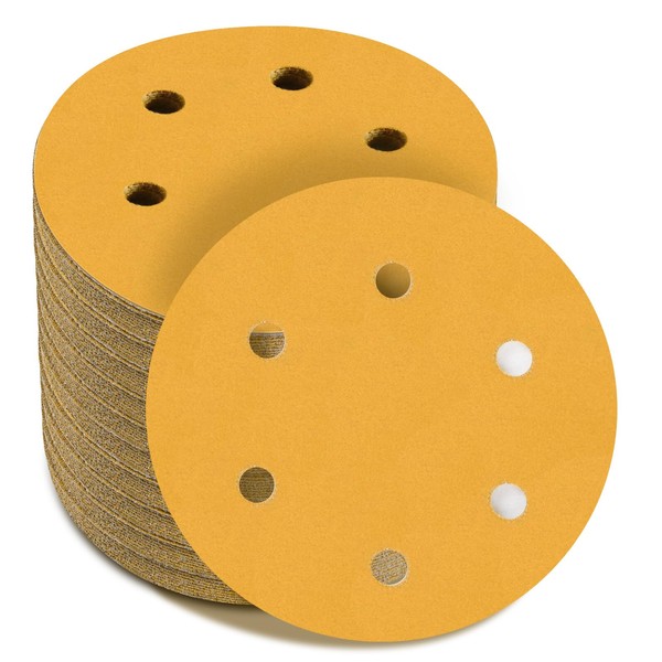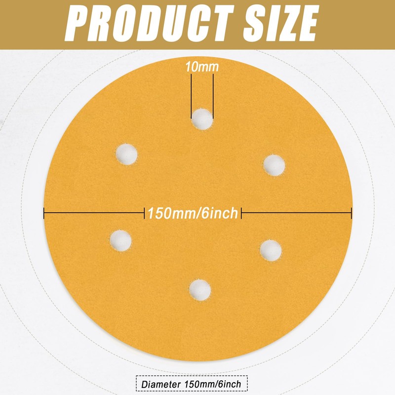- Includes: 100 Pack - 6 inch 220 Grit hook and loop gold sanding disc sandpaper.