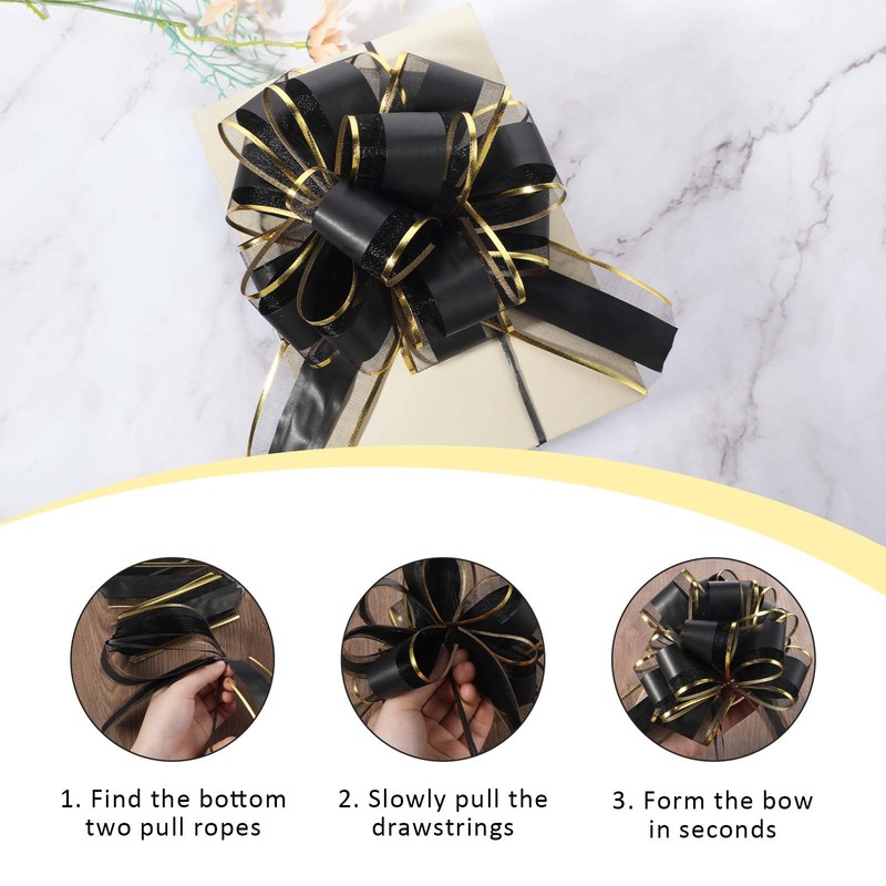 - Simple Assembly Process: designed for convenience, these pull bow ribbons come in a flat package, requiring minimal effort to assemble. simply hold two ribbons and pull to transform them into a stunning bow, making gift-wrapping quick and enjoyable. a knot at the top secures the bow in place.
