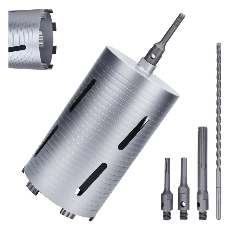 6 inch Diamond Dry Core Drill Bit, 10" Drilling Depth, 5/8"-11 Thread for Concrete Granite Masonry Brick Block, Includes 3 Adapters SDS Plus, SDS Max and Hex (6 inch)