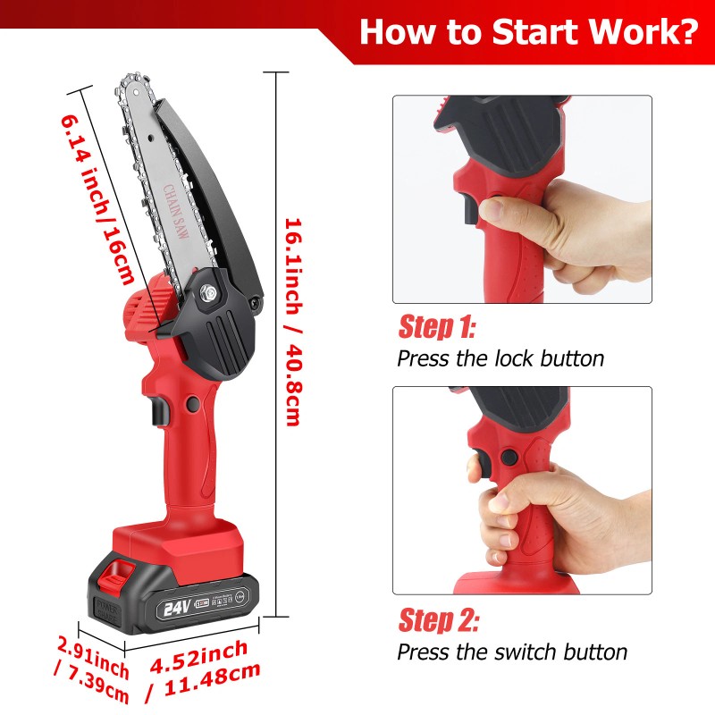 EASY TO USE: Excellent Mini saw. This 6inch chainsaw model is lightweight, portable, quiet, and fast cutting, ideal for pruning and other garden operations.