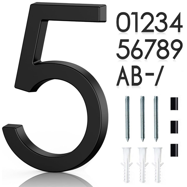 6 Inch Floating House Number Acrylic Modern House Address Numbers with Nail Kits for Outside Door Garden Mailbox Decor Visibility Signage - Number 5, Black
