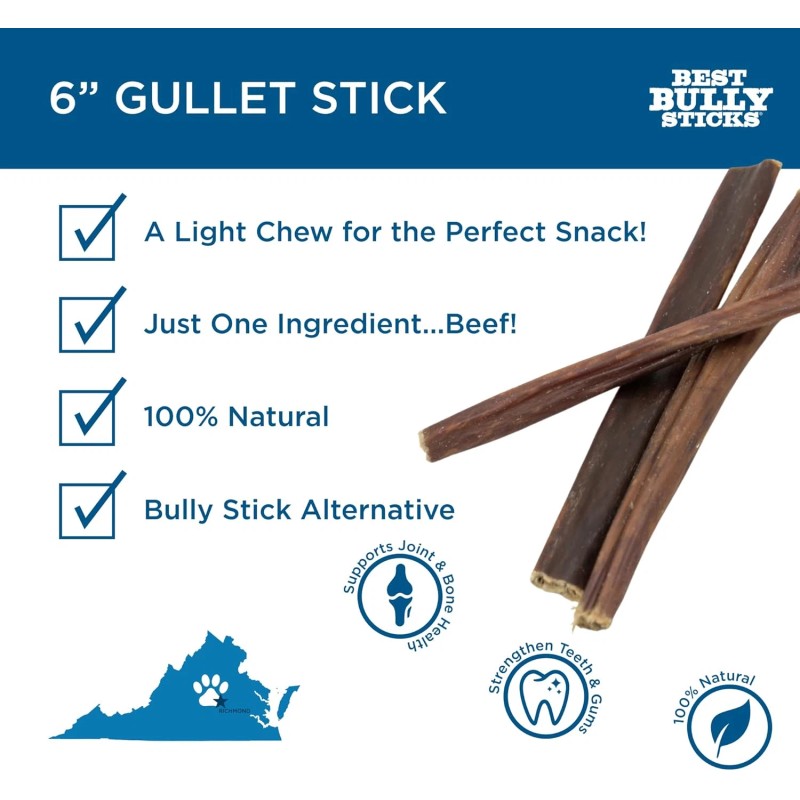 - ALL-NATURAL BEEF: Our gullet sticks are sourced from free-range, grass-fed cattle. We prioritize healthy, wholesome ingredients that are free from artificial additives for a delicious reward that will safely satisfy your pup’s taste buds.