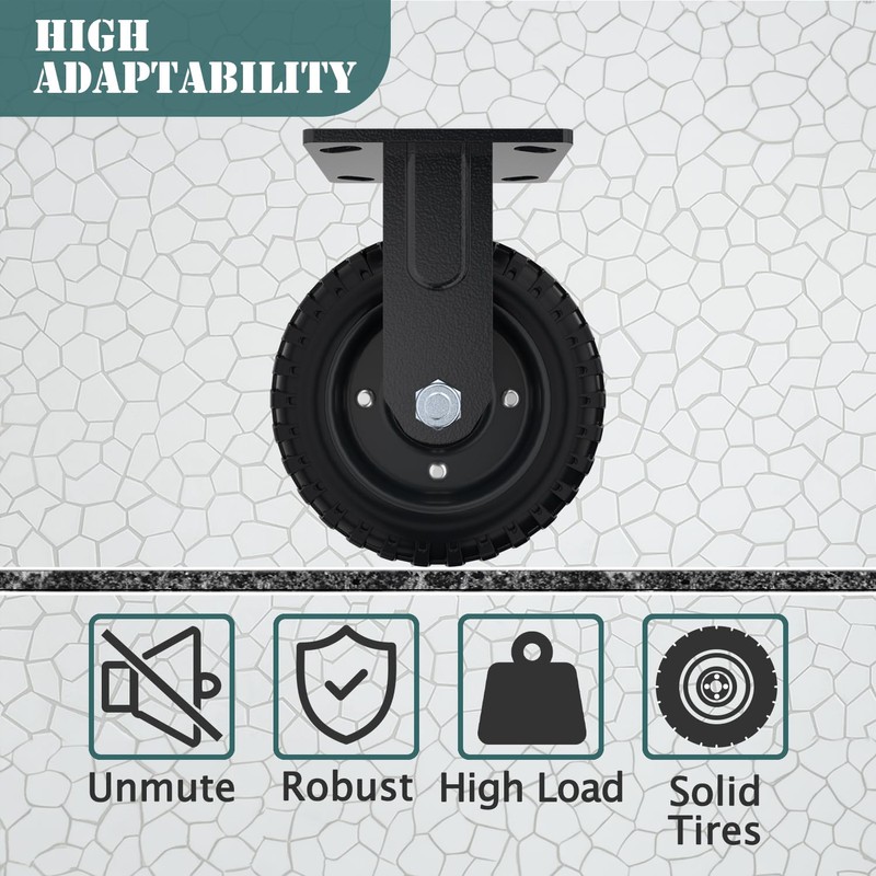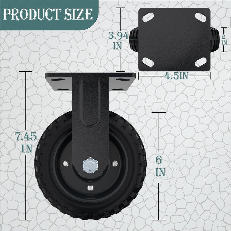 6 Inch Heavy Duty Caster Wheels Set of 4(2Swivel Brake & 2 Fixed 1600lbs Capacity, Large Solid Rubber Caster for Outdoor, Flat Carts, Dolly, Workbench,Trolley,Wagon and Chicken Coop