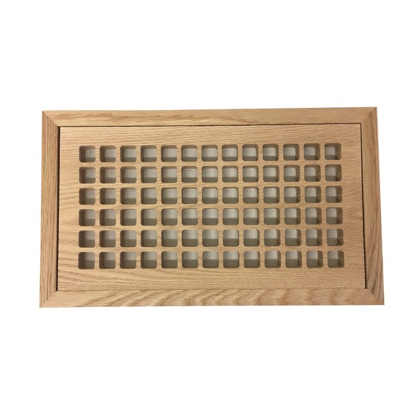 6 Inch x 12 Inch Red Oak Hardwood Vent Floor Register Flush Mount with Frame, Eggcrate Style, Unfinished