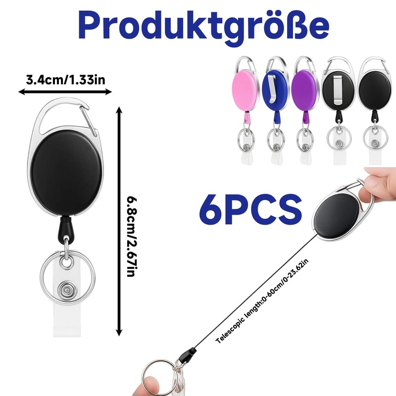 6 Key Chains Extendable 3 Black 1 Blue 1 Pink 1 Purple Lanyard Extendable with Steel Cable ID Card Holder Extendable for School, Hospital, Outdoor Activities, 6.8 x 3.4 cm, Stretchable up to 60 cm