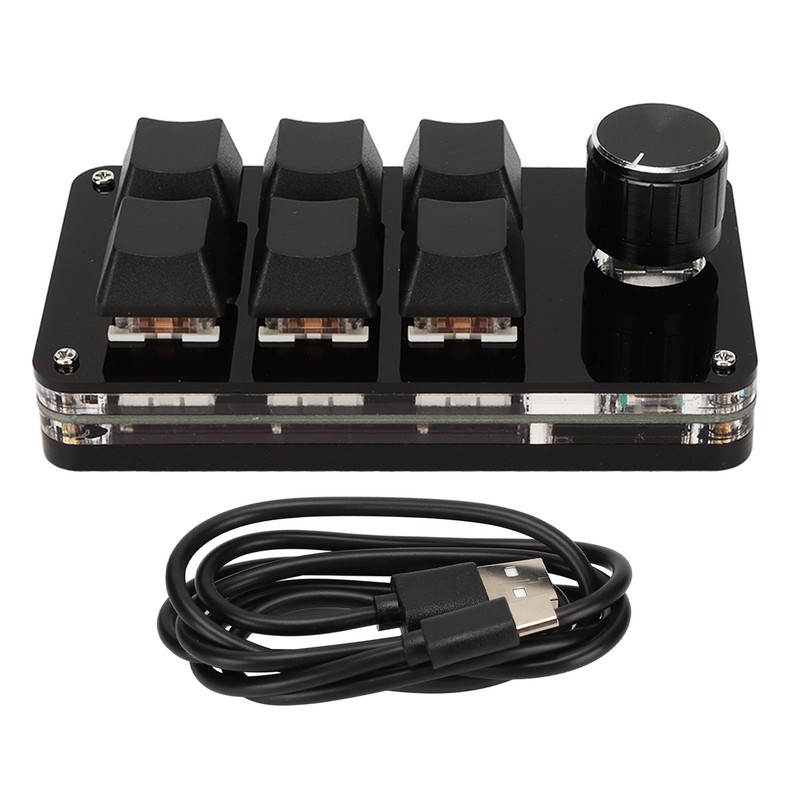 1、Full Key Customization: One key implementation of complex actions, such as copy, paste, silence, previous and next songs, knob to adjust volume, zoom in and out, etc. 2、Hot Swap: The full key supports hot swappable shaft design, and the mini keyboard and charging cable can be plugged and unplugged at will. 3、Easy To Use: No driver required, plug and play, support replacement of keycaps. 4、Mini Portable Keyboard: With only 6 keys, this keyboard is small and portable, effectively saving desktop space. 5、Wide Application Range: Mini keyboard is suitable for office, game, music, media, industrial control, laboratory, production line testing and other fields.