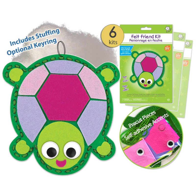 - "My first sewing kits" are a no-mess activity requiring sewing and peel and stick activity - Also contained in these individually wrapped craft kits are pre cut die cut felt pieces and pre-punched holes for beginners - Recommended for Age 6+