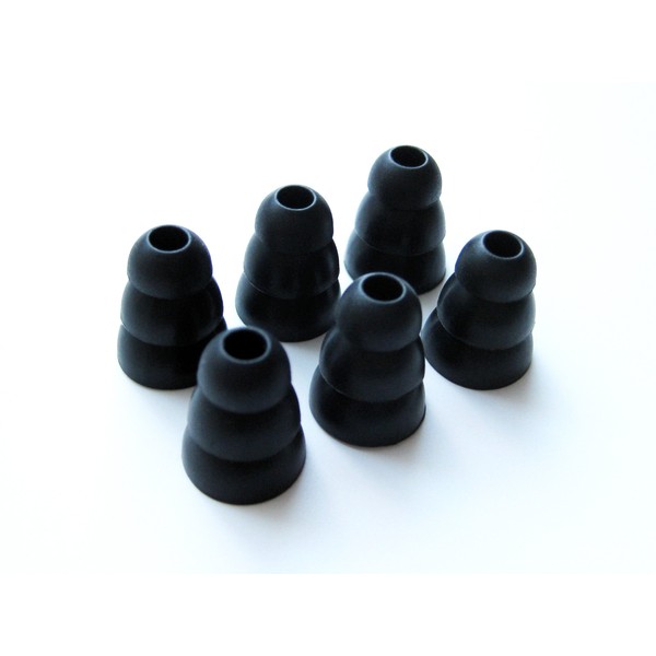 6 Large (L) Black Triple Flange Replacement Eartips Earbuds Ear Adapters for In Ear Earphones with 4.9mm to 6.3mm Nozzle Attachment