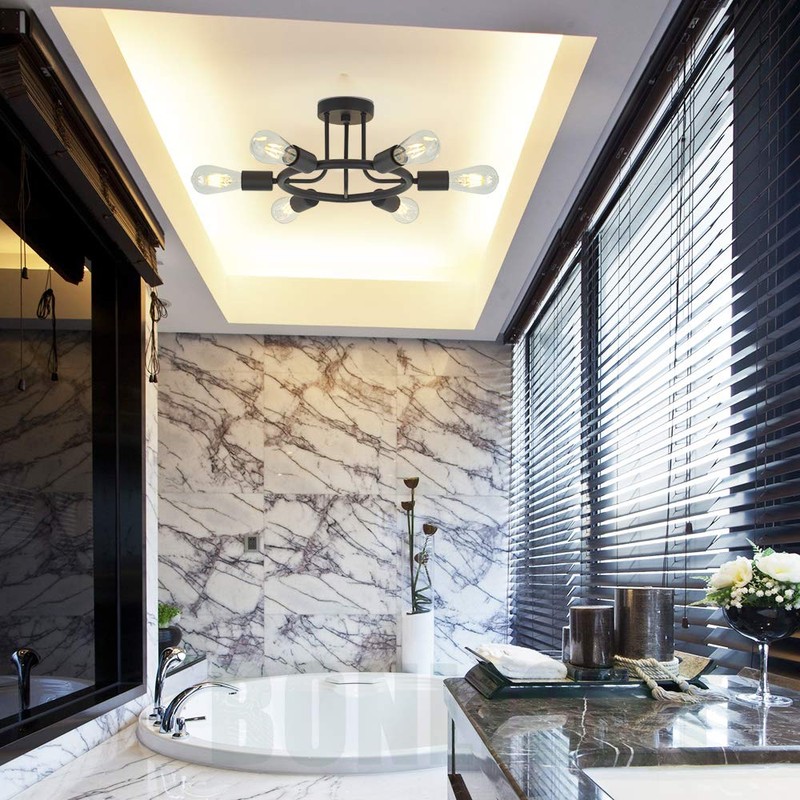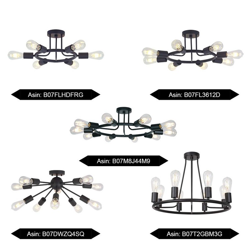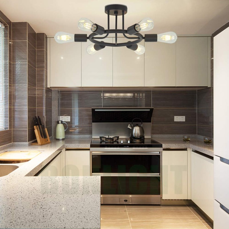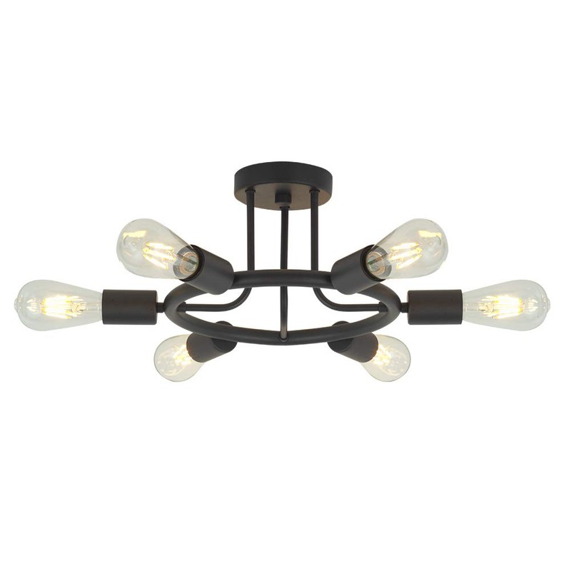 - ◎ This versatile six-light semi-flush ceiling fixture in black finish has a style that can work with just about any room decor. It's rustic, industrial and minimalist all in one cool design. A tubular metal ring frame holds vintage style Edison bulbs with no shades