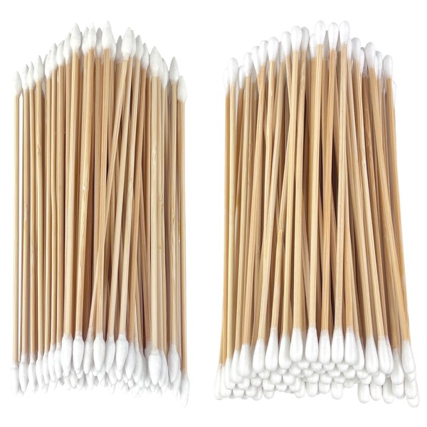 6" Long Cotton Swabs With Double Tips, 200 Pcs (100 double round + 100 double pointed)
