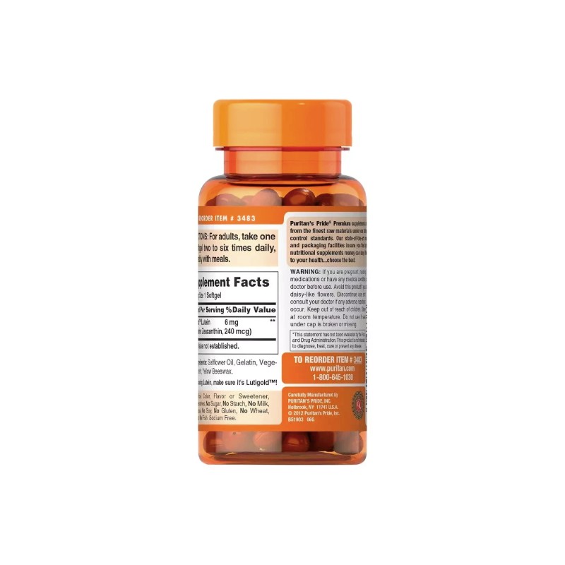 Ingredients : Lutigold鈩?Lutein 6 mg (contains Zeaxanthin, 240 mcg)