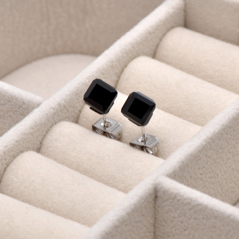 6 MM Onyx Black Crystal Cube Studs Stainless Steel Earrings for Women