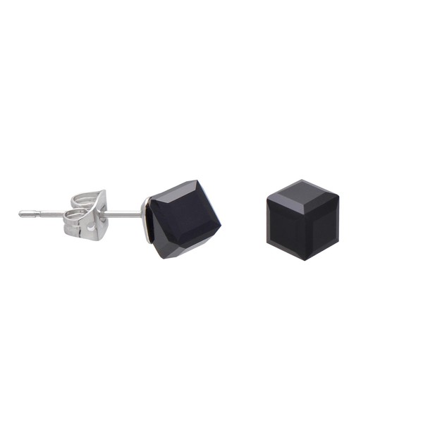 6 MM Onyx Black Crystal Cube Studs Stainless Steel Earrings for Women
