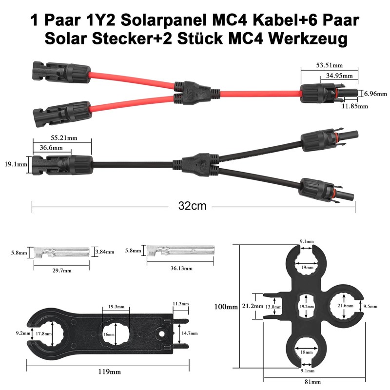 Color: Y2 solar cable, solar plug, wrench
