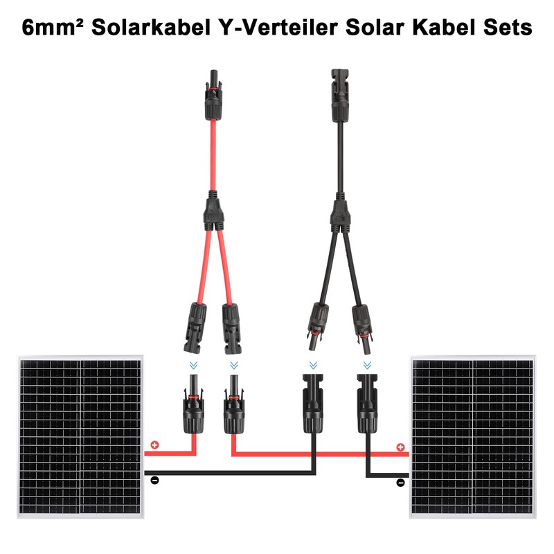 6 mm² Solar Cable Y Splitter, 1 Pair Solar Panel 1Y2 10AWG Y Plug Photovoltaic Cable, 6 Pairs Solar Plug, 2 Tools, Male/Female PV Plug IP67 Solar Y Cable MMF and FFM Connector (Red + Black)