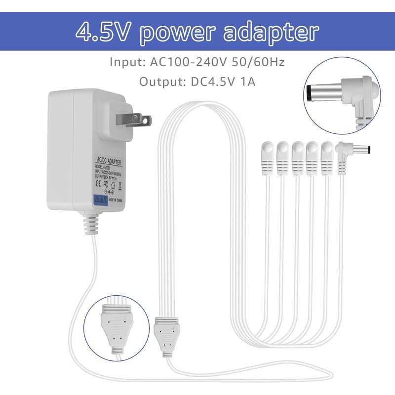 - [4.5V POWER ADAPTER]: Input Voltage 100-240V AC 50/60Hz; Output Voltage: 4.5V; The Adapter Interface Inner Diameter 2.1mm; Outer Diameter 5.5 Millimeters