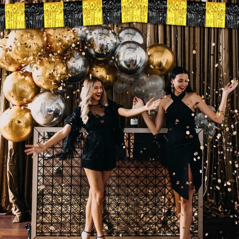 6 Pack 10 Feet Black Gold Foil Fringe Garland Metallic Tinsel Streamers Banner Wall Hanging Curtain Backdrop Banner for Parade Floats, Valentine's Day, Wedding, Birthday, Mardi Gras Party Decorations