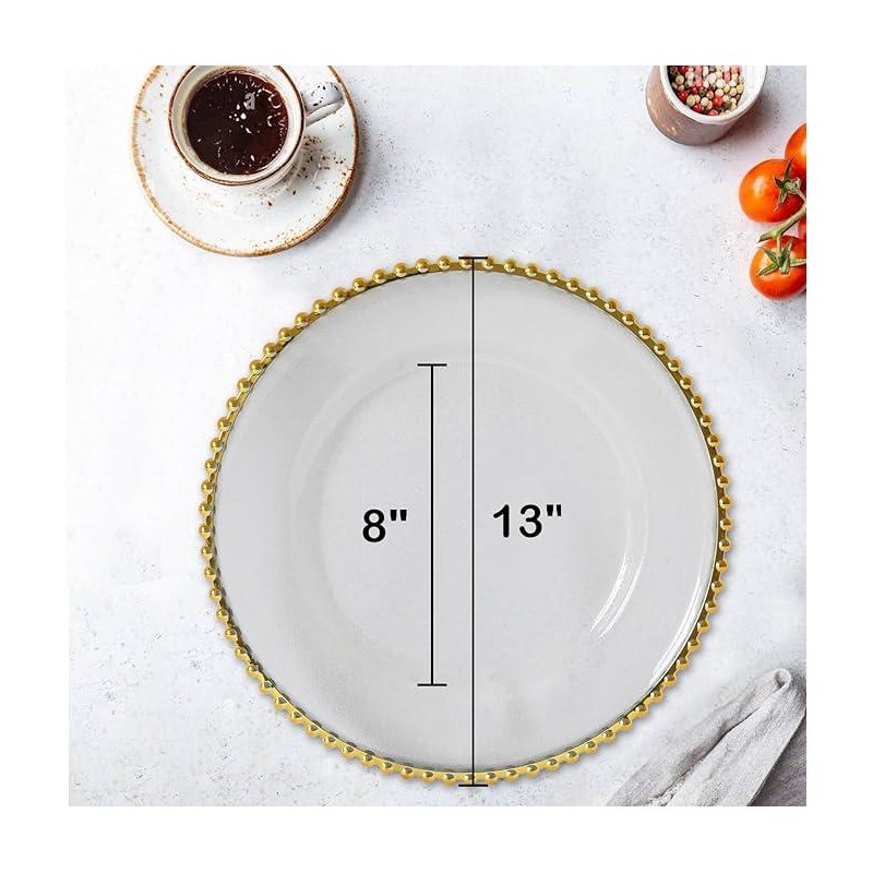 - Our 13" Clear Acrylic Round Charger Plates with a Beaded Rim are great for any themed event! With all the different styles and colors we have available, we are sure everyone will notice the subtle touch of adding charger plates to your table at your events!