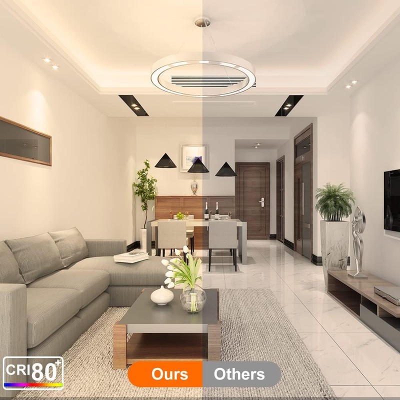 - 【Dimmable & CRI】10%-100% smooth dimming, compatible with most dimmers, the color rendering index of recessed lighting exceeds 80, which can restore more realistic colors for your room