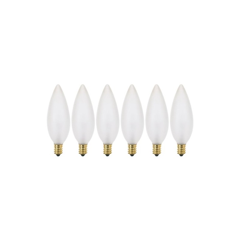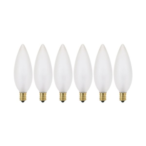(6 Pack) 25 Watt Frosted Candelabra Base (E12) Torpedo Tip 120V Chandelier
