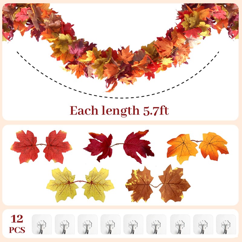 - Value Fall Garlands Set: You will receive 6 fall garlands each measuring 5.8 feet in length, complete with 12 hooks for installation anywhere in your home, easily meet your fall decorations needs