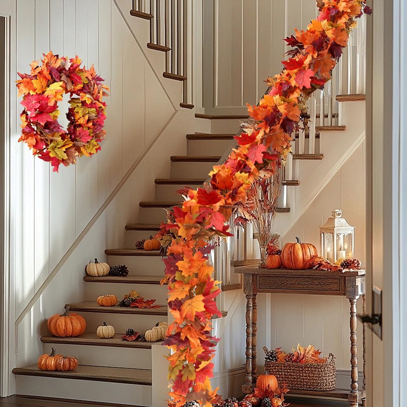 - High-quality Materials: The fall maple leaf garland are made of quality plastic and silk cloth, not easy to fade, sturdy, reusable, trendy and classic. Not only is it perfect for autumn, but it's also ideal for Thanksgiving decorations, indoor home decor, Christmas wreaths, and Halloween decorations