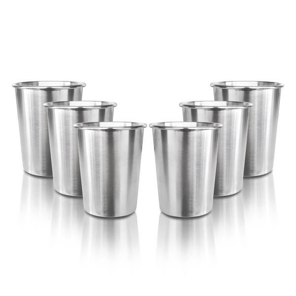 YOLCAR 6 Pack 8 oz Stainless Steel Kids Cups, Children's Pint Cups, Stackable Metal Cups, Shatterproof Drinking Glasses