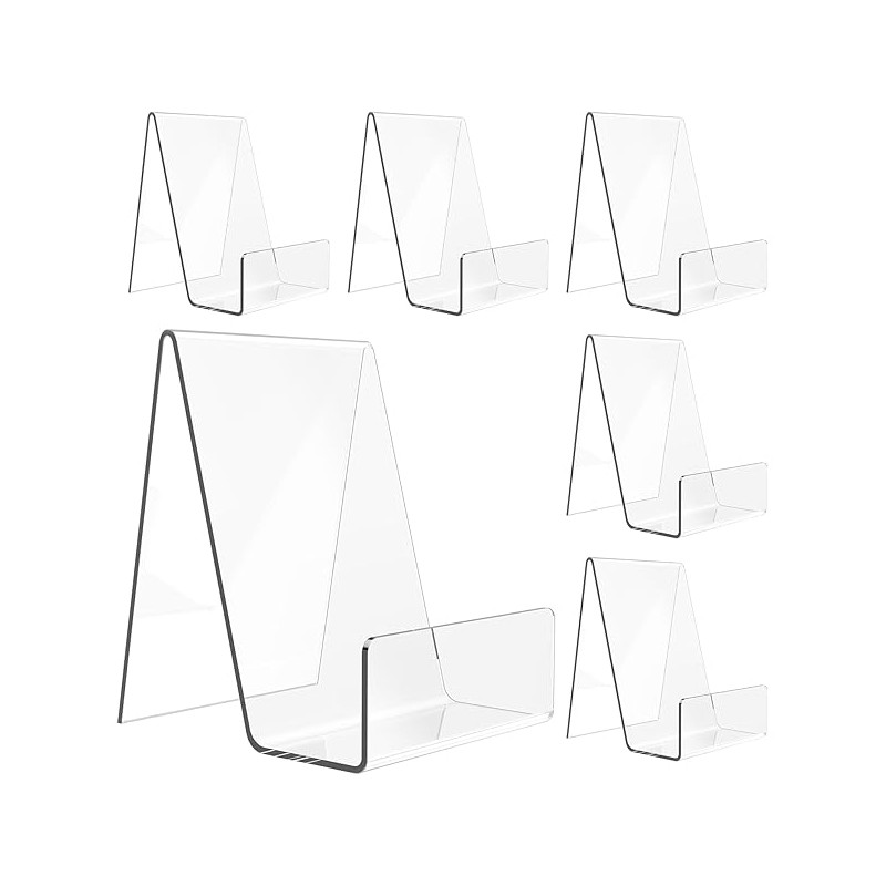6 Pack Acrylic Book Stand, Clear Easel Stand for Display, Book Display Holder, Display Stand for Album, CD, Magazine, Postcard, Picture, Plate, Artworks, Phone, Tablet