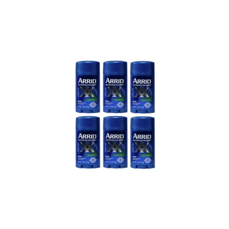 6 Pack Arrid Extra Extra Dry Unscented Solid Antiperspirant Deodorant 2.6 Oz Ea