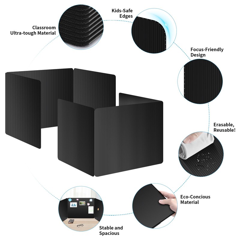6 Pack Black Desk Dividers for Students, Privacy Shields Folder for Students, Durable & Waterproof Plastic Study Board, Classroom Teacher Supplies Test Divider, Includes Extra Labels