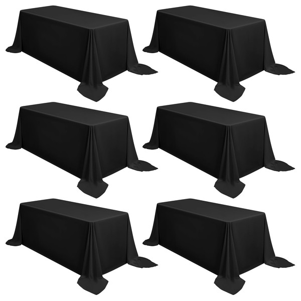 6 Pack Black Polyester Tablecloth 90 x 132 Inch Table Cloth for 8 Ft Rectangle Tables, Stain and Wrinkle Resistant Washable Fabric Table Cover for Wedding Buffet Party Events Banquet