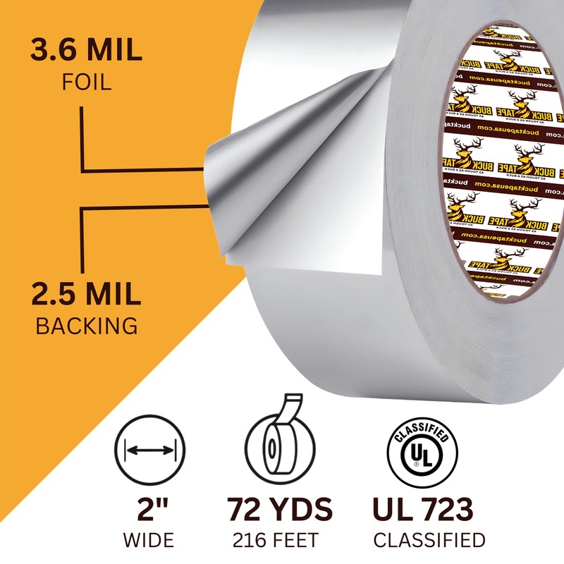 - Perfect Air Seal: This Buck Heavy Duty Aluminum Foil Tape is designed to easily seal HVAC air ducts, as well as any other hot or cold intakes. With its strong adhesive backing and heat-resistant properties, it ensures a secure and long-lasting seal for your ductwork.