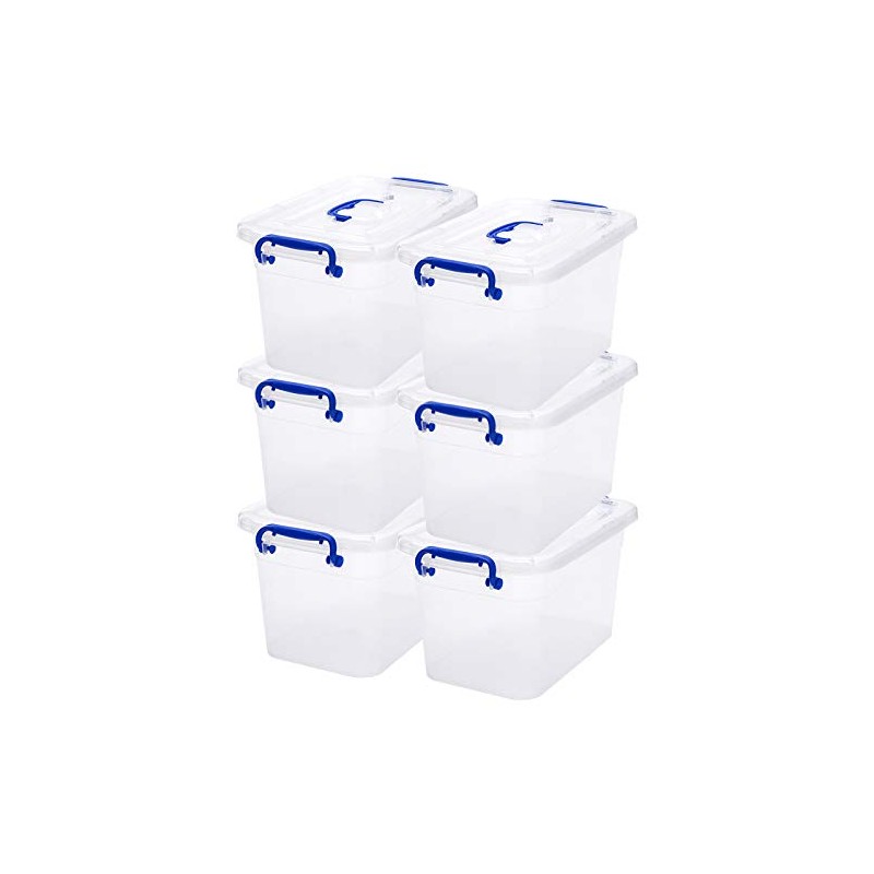 6-Pack Clear Storage Box 7 Quart, Plastic Storage Latch Bins with Handle 6.5 Liter