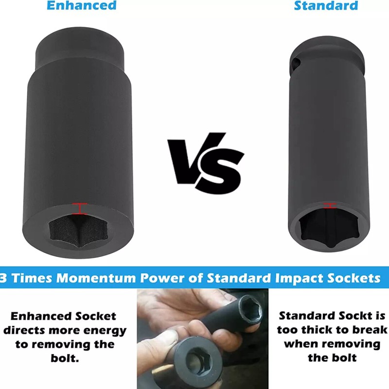 3) These sizes are 17mm, 19mm, 21mm,22mm,24mm and 27mm large deep impact sockets. Can work for a variety of vehicles, compatible for Honda, Toyota, GM, LS , Isuzu, Kia, Nissan, BMW, Dodge, Ford & Jeep, etc. Just make sure the size of the crank bolts, will perfectly fit for the same size application
