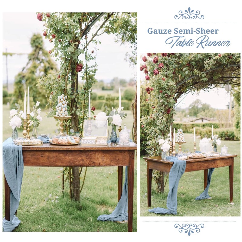 - ⭐【Product Included】: You will receive 6 pcs dusty blue cheesecloth gauze table runners. Product size: 35 inches wide and 120 inches long, suitable for round or square tables that can accommodate 8-10 people. Perfect for romantic and elegant party events.