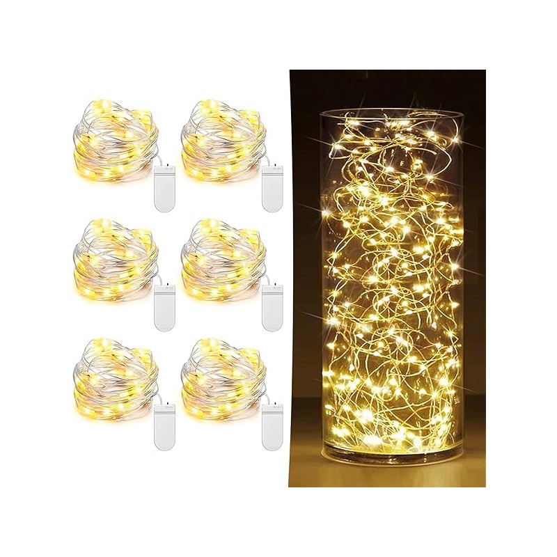 6 Pack Fairy Lights Battery Operated 7ft 20 LED Mini String Lights Twinkle Lights Silver Wire Firefly Starry Lights for Mason Jars Wedding Party Christmas Centerpiece Table Decorations, Warm White