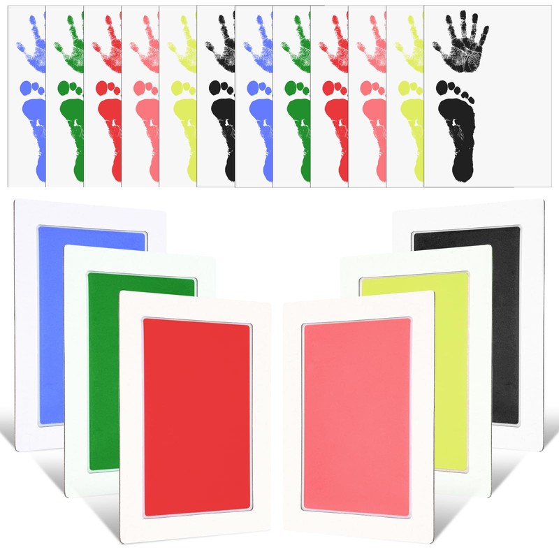 - 【Vibrant Multi-Color Ink Pads】 Includes 6 inkless pads in black, blue, green, yellow, pink, and red for creative and colorful handprint/footprint memories.