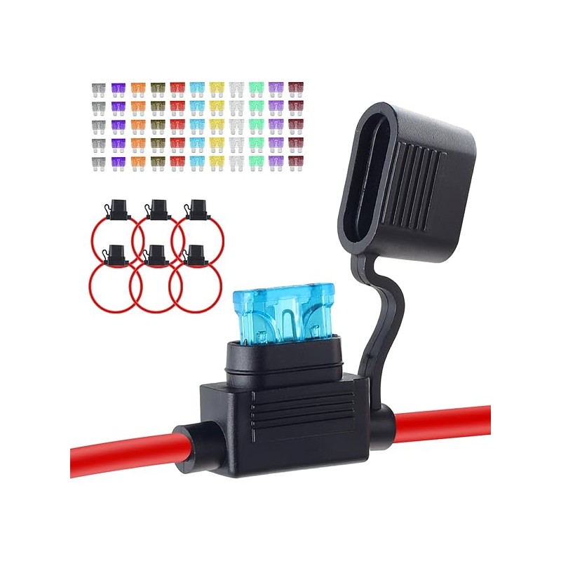 6 Pack Inline Fuse Holder 12V, Upgraded 12 AWG Waterproof Fuse Holder with 66 Pcs Standard Car Fuses (2A/3A/5A/7.5A/10A/15A/20A/25A/30A/35A/40A), YNZDRWA in Line Fuses Holders 12v for Marine Auto