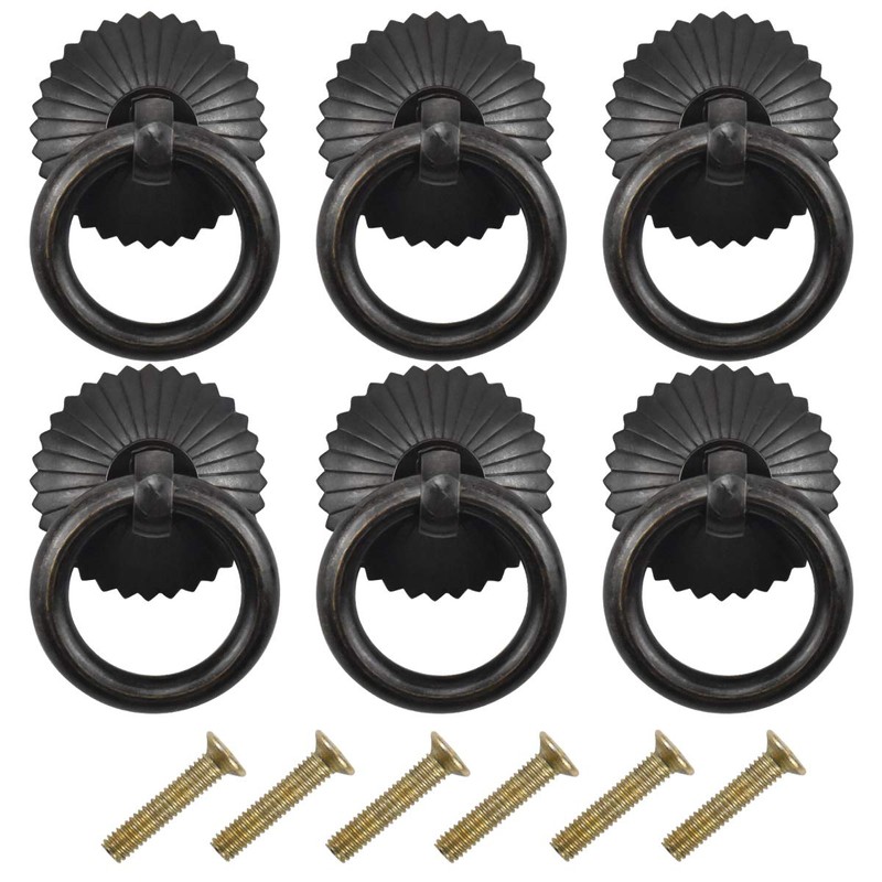 6 Pack Kitchen Cupboard Handles, Door Knobs, Antique Drawer Ring Pull Handle with Screws, Metal Copper Furniture Cabinet Drawer Knobs Replacement for Kitchen Bathroom (Black)