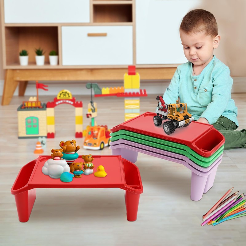 6 Pack Lap Table Tray Portable Activity Table with Side Pockets and Slot, Lap Top Desk Tray for Writing Eating Game Snacks, Activity Lap Desk Tray for Children Aged 2+ (Red, Green, Purple)