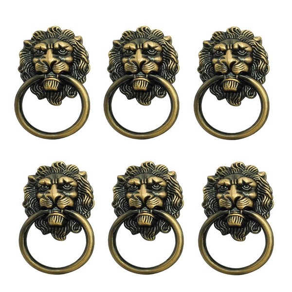 6 Pack Lion Head Knob Pull Handle for Dresser Drawer Cabinet Jewelry Box with Drawer Ring 1.57 x 2.64 Inch Antique Door Pulls Handle Knobs(Bronze)