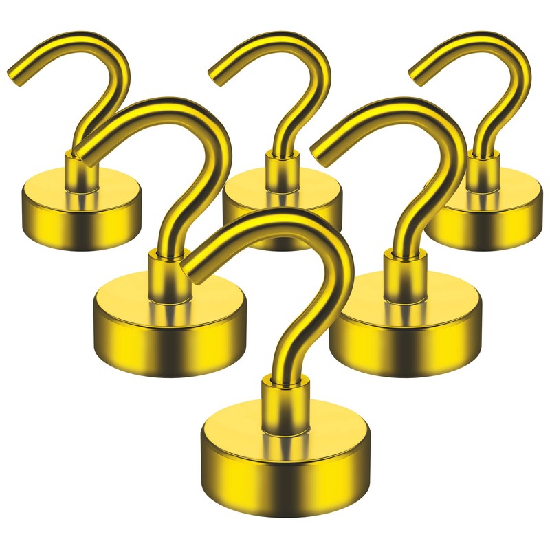 6 Pack Magnetic Hooks, 10 kg+(22 lb+) Strong Magnet Hooks, Fridge Magnet Hooks for Hanging, Neodymium Magnets with Hook, Magnetic Hooks for Cruise, Ceiling, Bathroom, Kitchen, Towel, Garage (Yellow)