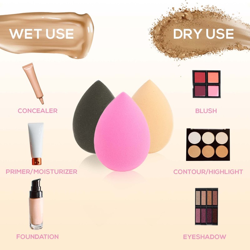 - Universal Compatibility: Our beauty sponges are compatible with a wide range of cosmetics, including foundation, concealer, primer, blush, bronzer, and even skincare products like serums and moisturizers. Whether you're creating a natural daytime look or a glamorous evening ensemble, these sponges effortlessly blend and apply all types of cosmetics for a flawless finish.