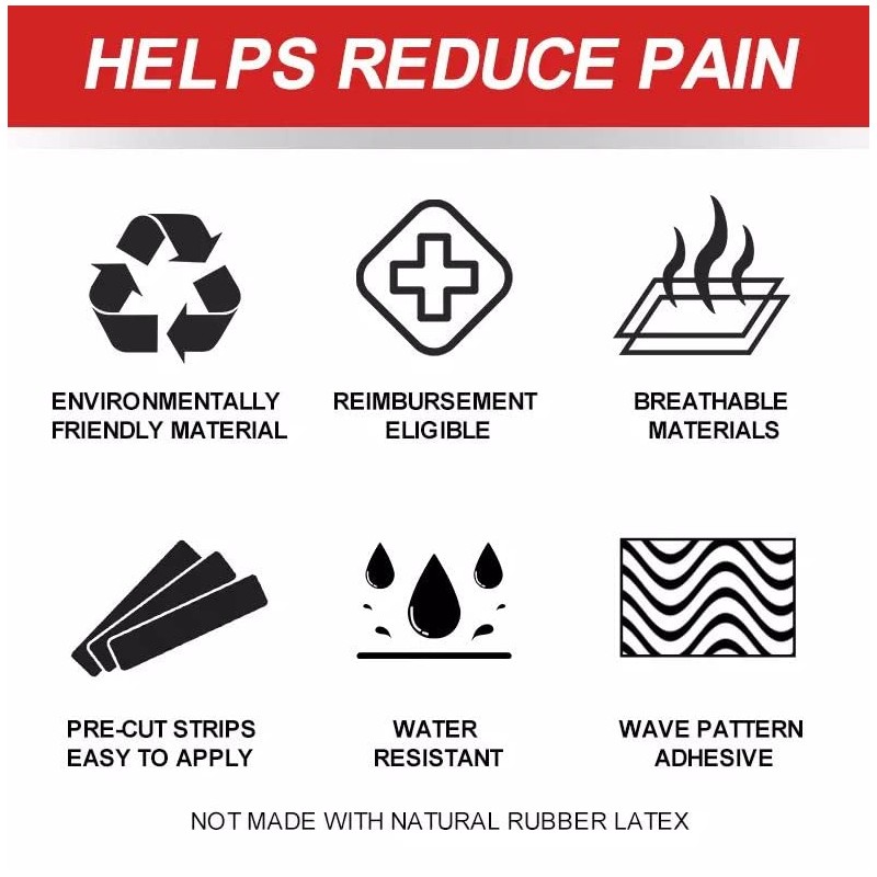 No matter what type of athletic activity you are gearing up for, you want to know that you are putting you body is the best position to succeed. Our premium, medical grade Kinesiology tape is 100% latex free, waterproof, and hypoallergenic. It will stay on arms, legs, knees, elbows, shoulders, and any other body part through the toughest workouts for days at a time without ever irritating sensitive skin. Designed for use by professional athletes, as well as for home first aid, this Kinesiology tape is perfect for muscle injuries and recovery. Easy to use and comfortable to wear, the supportive tape helps treat and prevent common sports related injuries and pain by offering support wherever it is needed on the body. Not just for athletes, this tape is also great for sore backs, plantar fasciitis, cellulite, and more. We’re confident you’ll find this among your best supplies, whether you’re treating tendonitis, supporting splints, providing manual support, or simply seeking to relieve discomfort in pregnancy. Whatever your goals and method, this adhesive is made for strength and comfort. Each uncut roll is 2 inches wide by 16 feet long and comes with six rolls to a pack. Strips can be cut as long or short as needed and easily applied with the adhesive cover providing a grid type system so when cutting into pieces you can be sure to be accurate.
