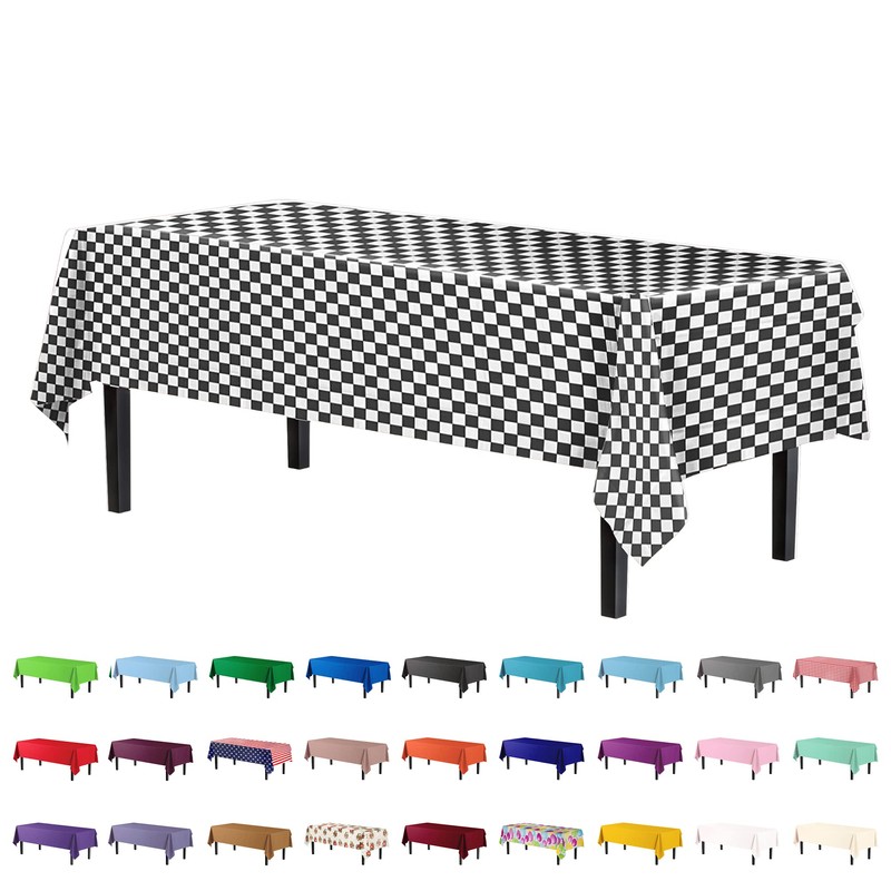 - PREMIUM QUALITY PROTECTION: This 6 pack of 54 in. x 108 in. Rectangle Checkered plastic tablecloths will cover any table up to 8 feet. Unlike your typical paper table clothes these disposable table covers for parties are spill and waterproof!!!